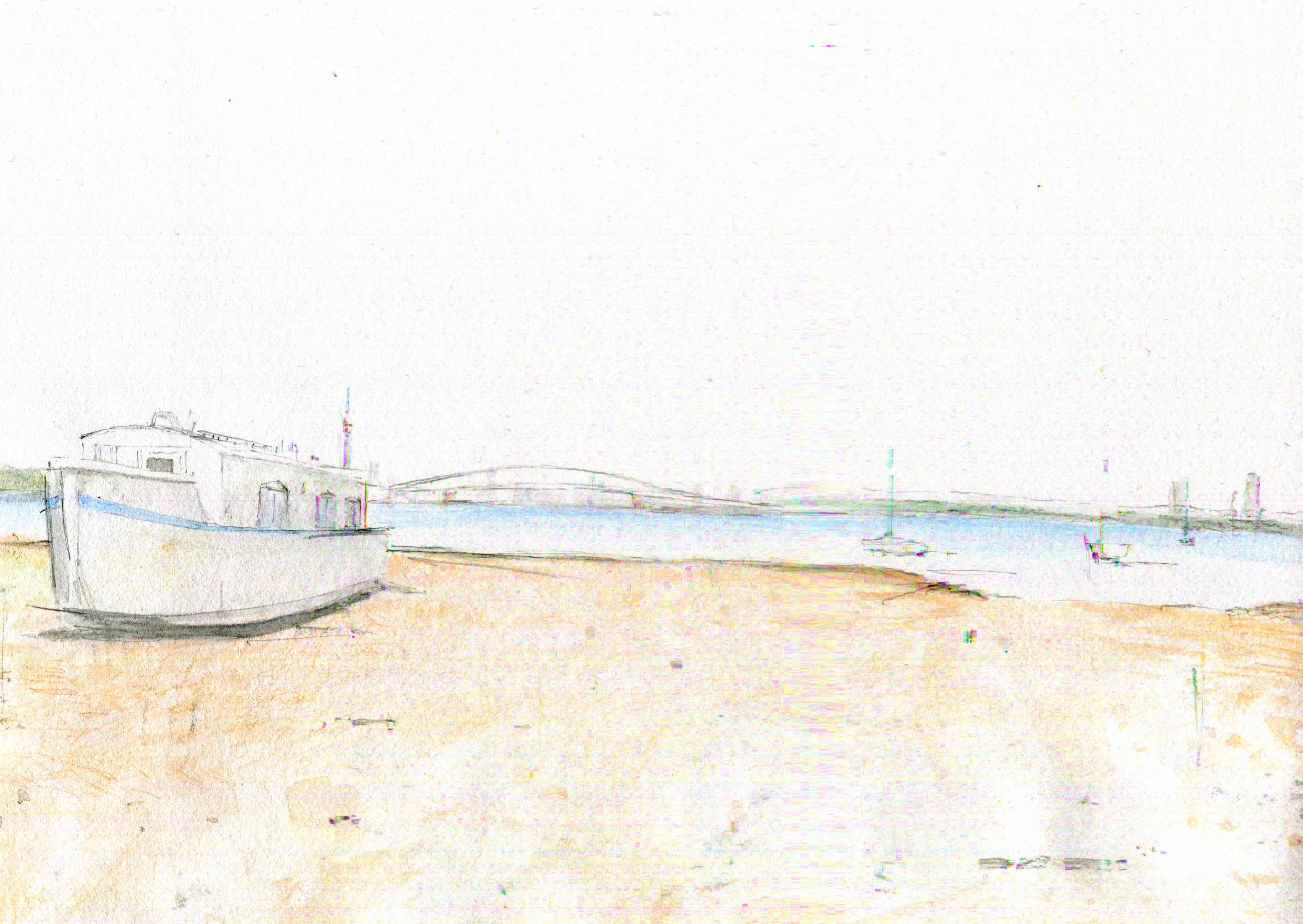 pencil, watercolour on paper